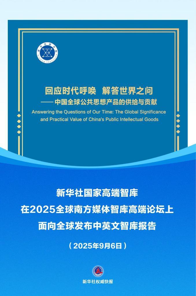 9月6日,在2025全球南方媒体智库高端论坛上,新华社国家高端智库面向全球发布《回应时代呼唤 解答世界之问——中国全球公共思想产品的供给与贡献》中英文智库报告。